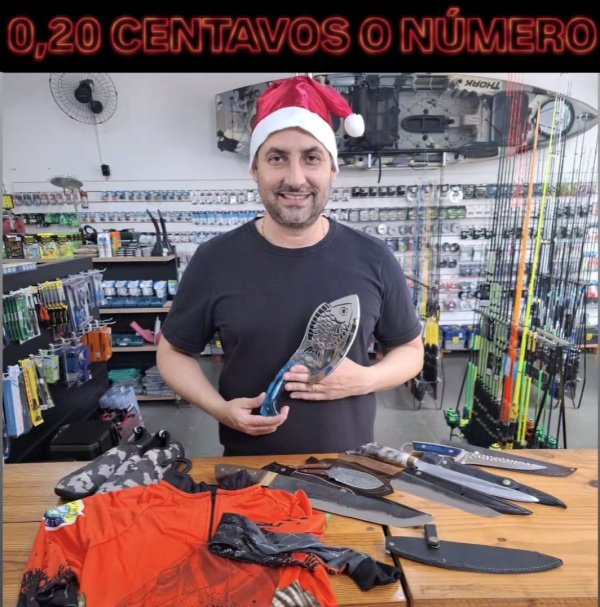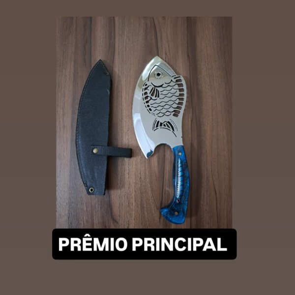 O ganhador leva para casa 1 Cutelo artesanal com lâmina com formato de peixe ou 250 no Pix.