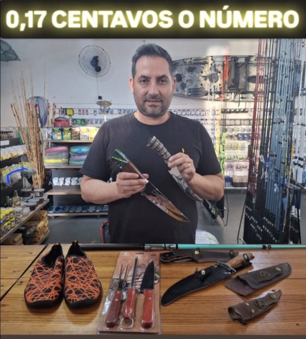 O ganhador leva para casa 1 faca Fileteira Tatu ou 200 no Pix