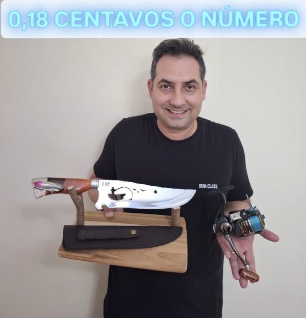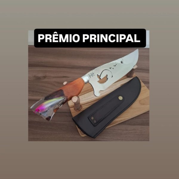 O ganhador leva para 1 faca artesanal, 10,5 polegadas, lâmina trabalhada com dorso trabalhado ou 200 no Pix.