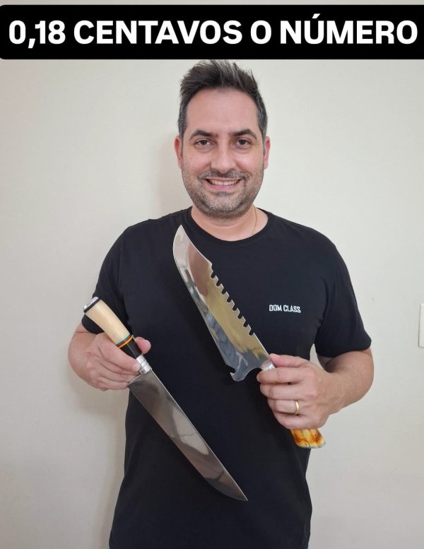 O ganhador leva para casa 1 faca artesanal, lâmina espelhada e trabalhada ou 200 no Pix.