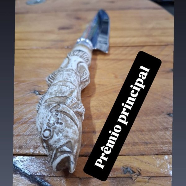 O ganhador leva para casa uma faca artesanal com cabo em forma de Tucunaré.