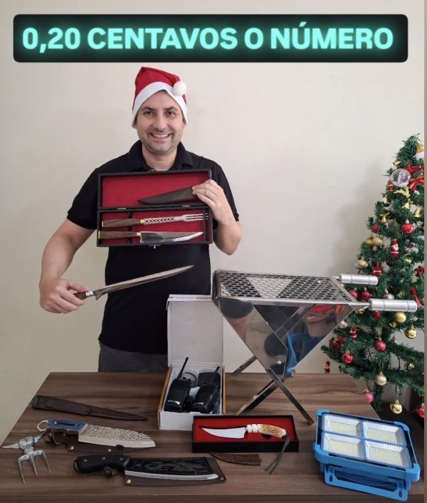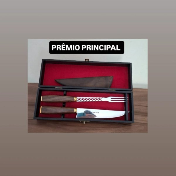 O ganhador leva para casa 1 kit de faca e garfo artesanal com estojo ou 250 no Pix.