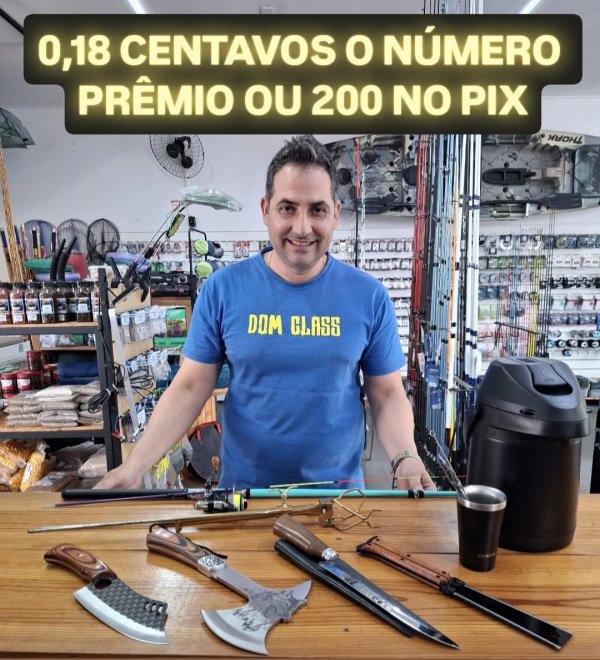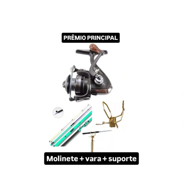 O ganhador leva para casa 1 kit com vara, molinete e suporte de vara ou 200 no Pix.